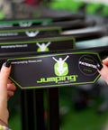 Etiketa s logem Jumping® na přední stranu opěrného madla pro trampolíny FLEXI, EXCELLENT a ADVENTURE, 218 mm x 69 mm