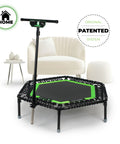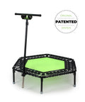 Diese sind aus einem runden Stahlprofil mit einer Seitenbreite von 2 mm. Der Stützgriff besteht aus drei Teilen, welche – genauso wie der Rahmen des Trampolins – mit Hilfe von Verbindungstücken zusammengesetzt werden. Ein Vorteil der Stützgriffe ist die variable Einstellbarkeit nach der Größe des Springenden. Die Halterung der Stützgriffe ist fest zum Trampolin befestigt, wodurch eine tolle Stabilität des Trampolins gewährleistet ist. Der untere Teil der Lenkstange ist aus rostfreiem Stahl. Dank diesem Material kommt es zu keiner unansehnlichen Abschürfung.